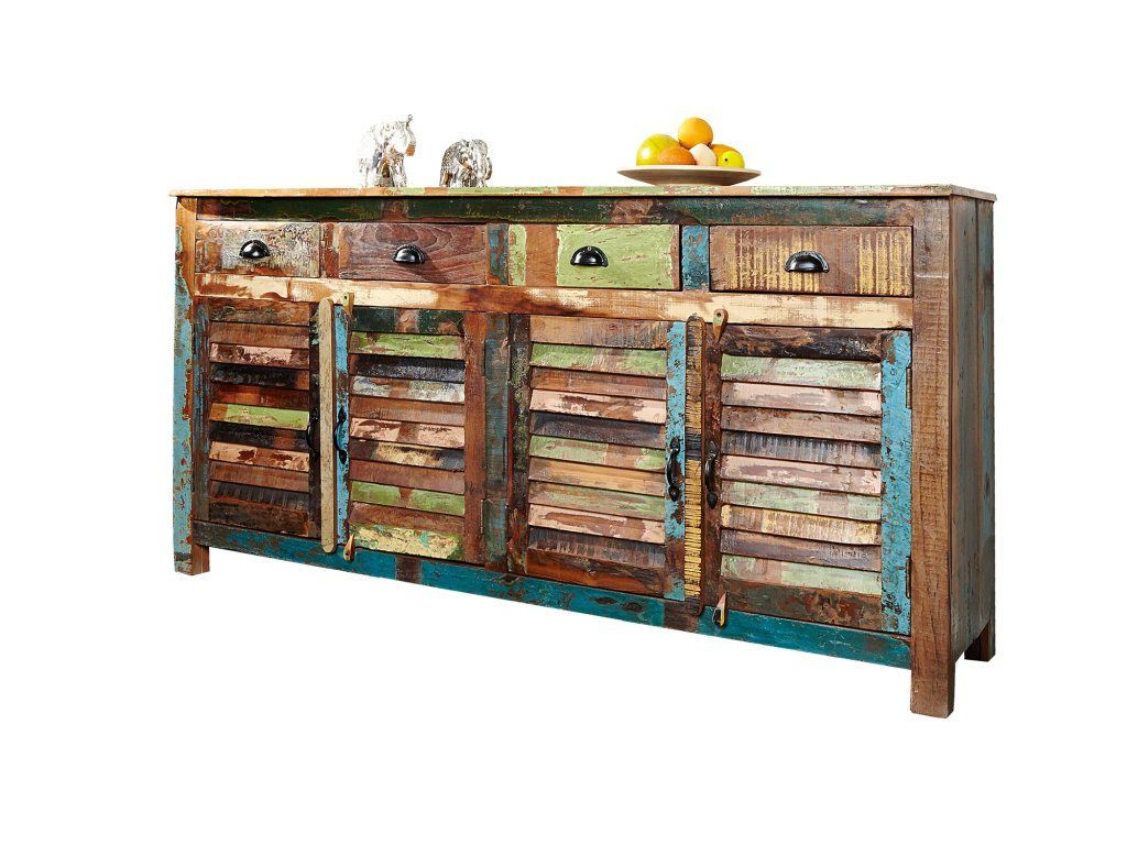 Barevná komoda z masivu se šuplíky a lamelovými dvířky
