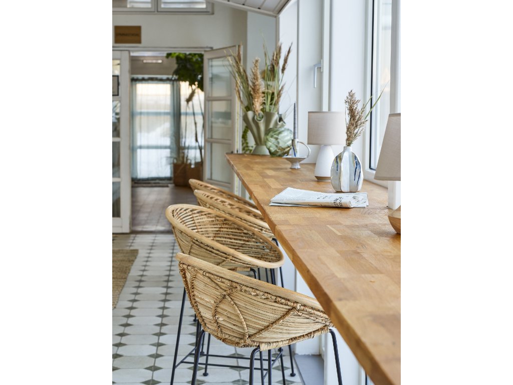 Barová stolička z ratanu a železa, na které se velmi pohodlně sedí. Skvěle se hodí do každého kuchyňského baru nebo ji použijte v pokoji pro dospívající jako židli k vysokému stoluDoplňkové parametry