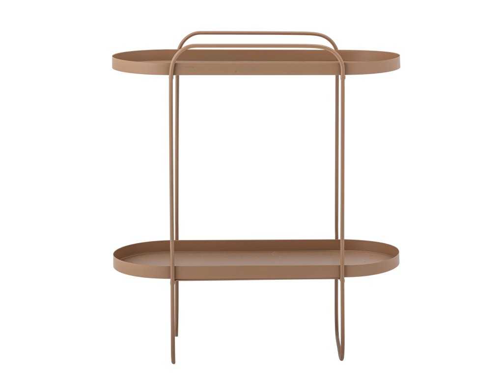 Boční stolek Reet od společnosti Bloomingville vyzařuje lehkou a elegantní atmosféru díky svému minimalistickému a lehkému designu. Je vyroben z kovu v hnědém odstínu a kombinuje robustnost a styl. Oválný tvar stolku mu dodává jemný a přívětivý vzhled. Díky dvěma úrovním nabízí stolek praktický a přístupný prostor pro uložení nebo vystavení dekorativních předmětů. Skvěle se hodí jako doplněk obývacího pokoje, ložnice, nebo dokonce kanceláře, kde přispěje k funkčnosti i hřejivému estetickému kouzlu.Doplňkové parametry