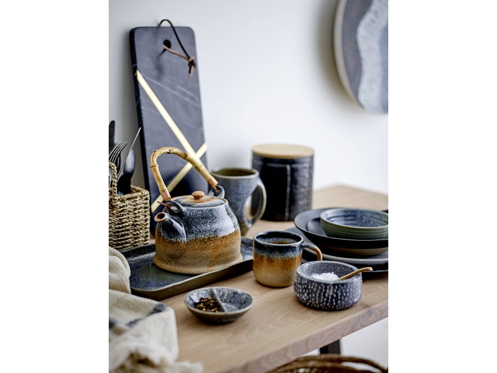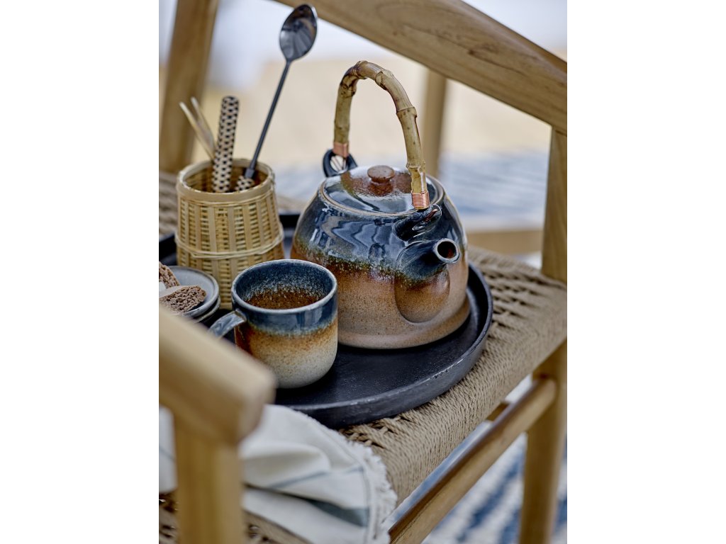 Modrá čajová konvice Aura se sítkem z porcelánu je stylovým a praktickým doplňkem do interiéru.