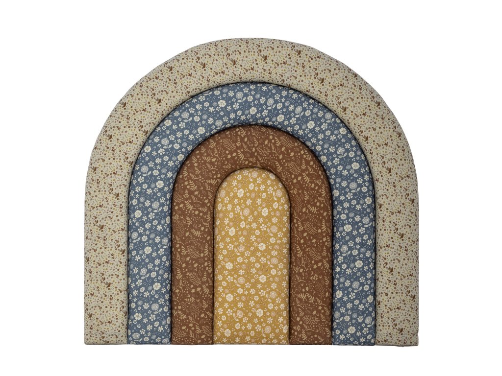 Čelo postele Jo od Bloomingville MINI je nezbytnou součástí dětského pokoje! Čelo postele má tvar duhy, je z bavlněné látky s různými květinovými potisky, v teplých a jemných barvách. Oblouky mají měkkou výplň, díky které je pohodlné pro záda. Je připraven k montáži na zeď.Doplňkové parametry