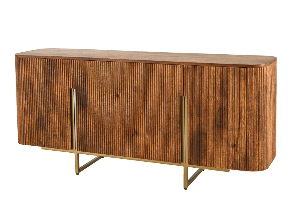 Designová komoda z masivu s lamelovým dekorem a zlatou konstrukcí