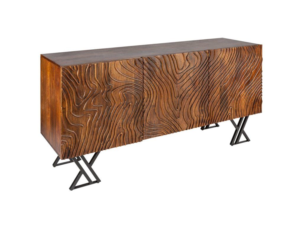 Designová komoda z masivu s reliéfním vzorem a kovovou podnoží