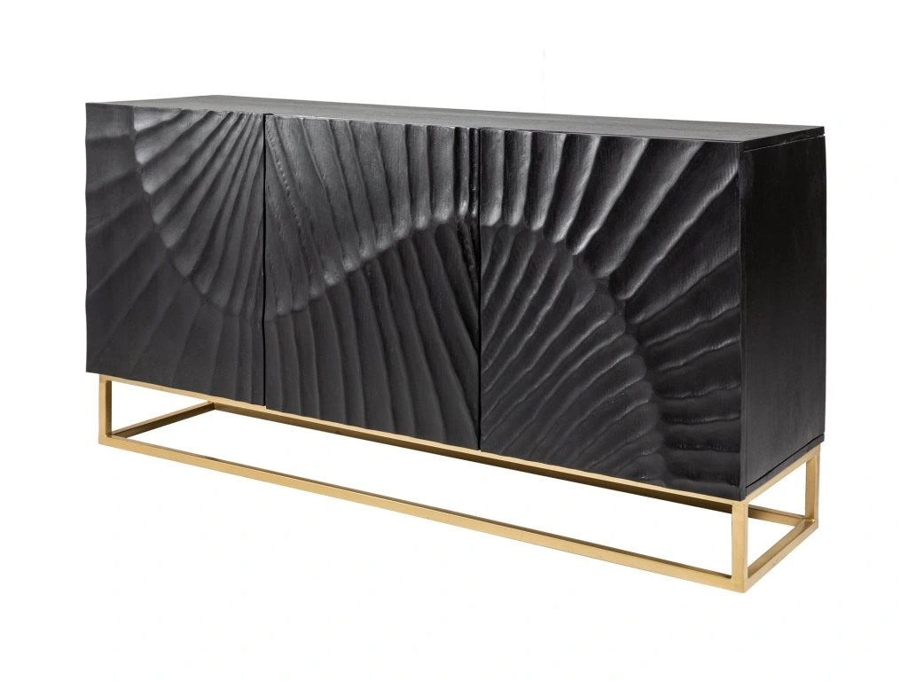 Designová komoda z masivu v černé barvě s reliéfem a zlatou konstrukcí
