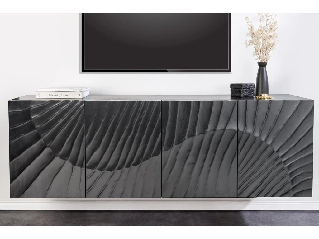 Designová komoda z masivu v černém provedení s reliéfním vzorem