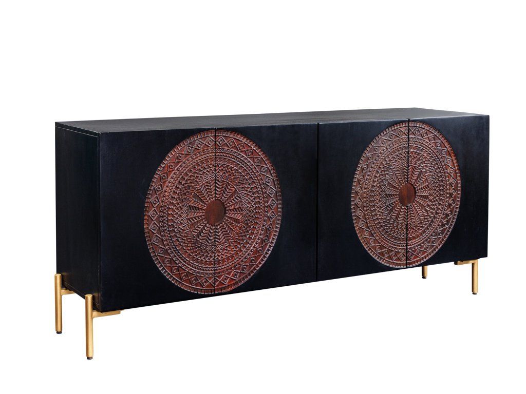Designová komoda z masivu v tmavém provedení s ornamentálním reliéfem
