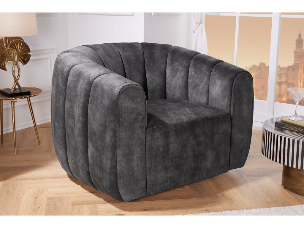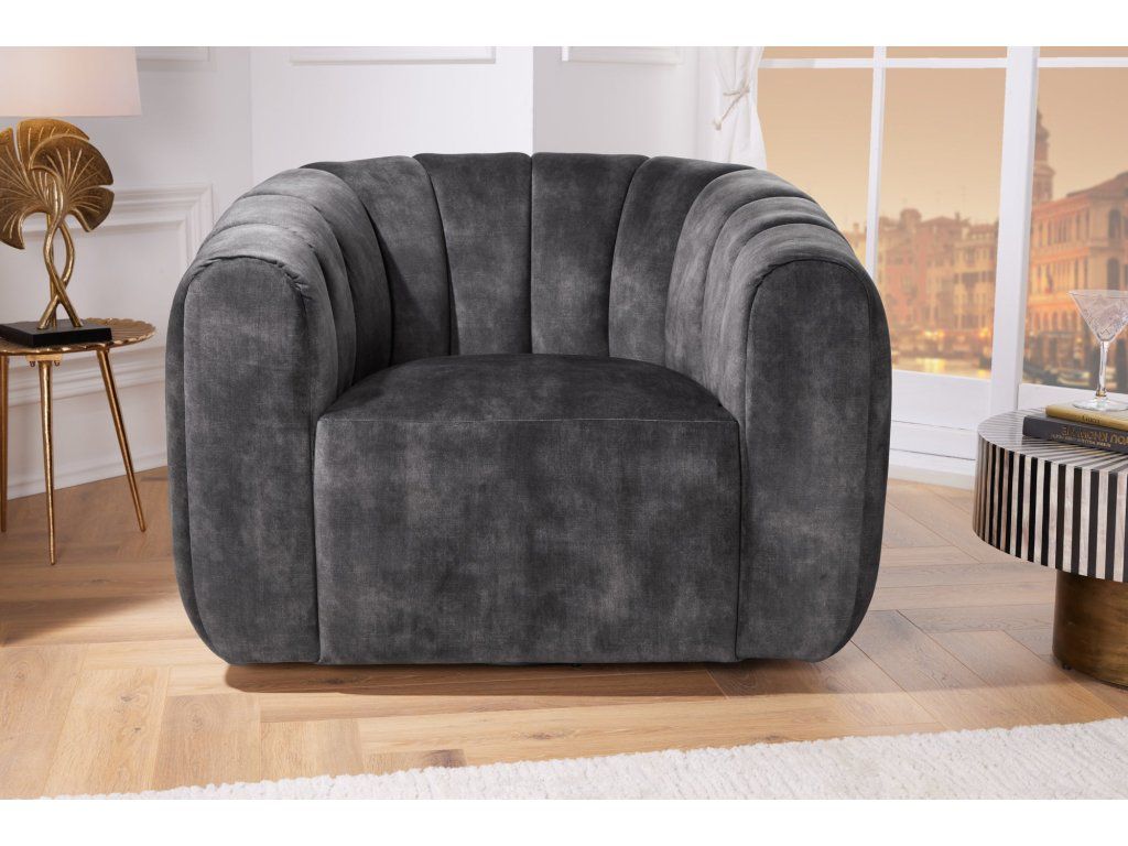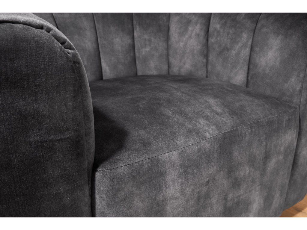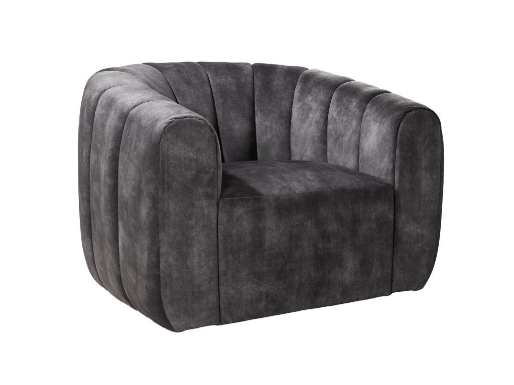 Moderní designové křeslo v šedém odstínu zaujme svým výrazným oblým tvarem a vertikálním prošíváním, které dodává celému kousku elegantní a nadčasový vzhled. Díky kompaktním proporcím působí útulně a zároveň velmi stylově.