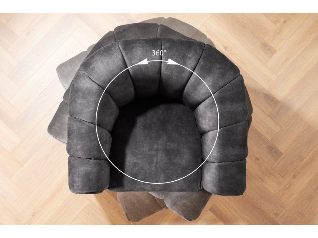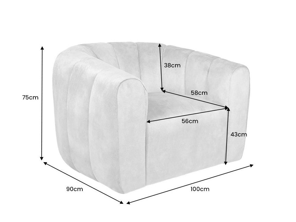Křeslo je potaženo kvalitní sametovou látkou, která je hebká na dotek a zároveň působí luxusním dojmem. Pokud hledáte pohodlné křeslo pro každodenní sezení i relaxaci, tento model je ideální – hlubší sedák a zaoblené opěradlo poskytují dostatek komfortu při odpočinku.