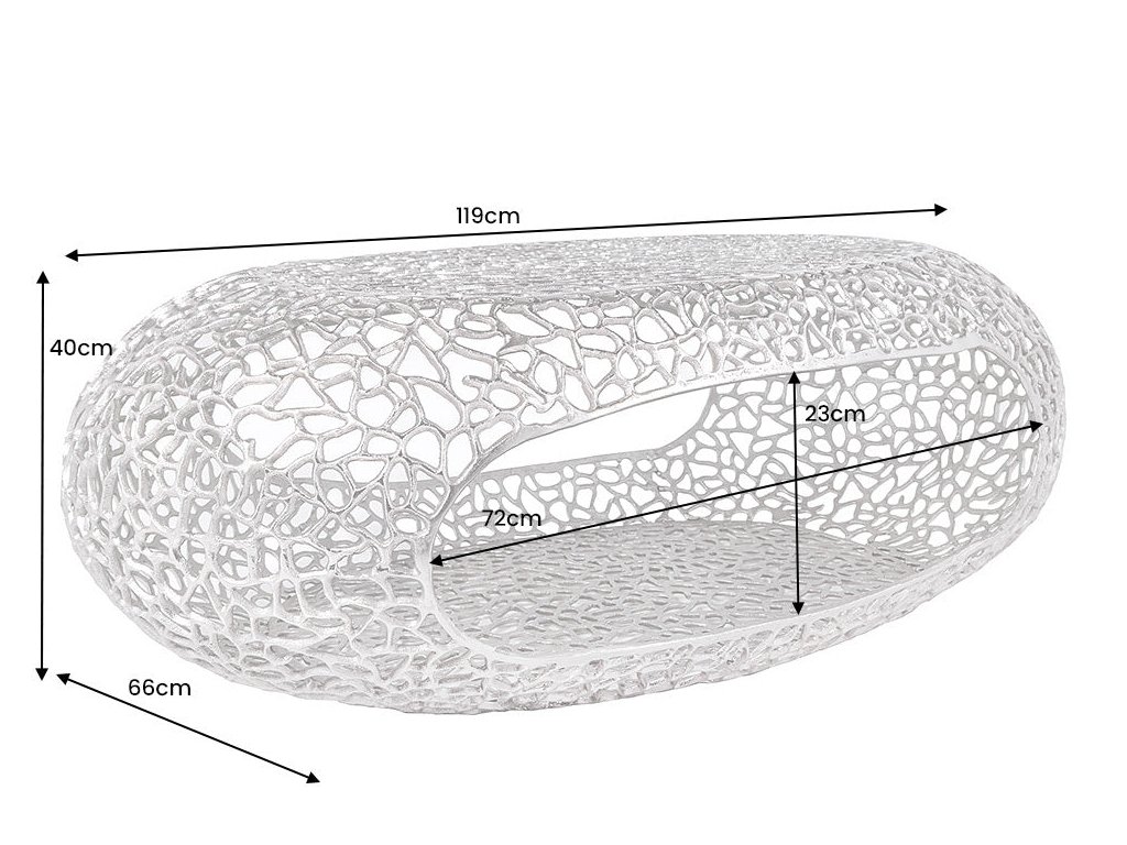 Oválný tvar působí elegantně a vzdušně, zároveň nabízí dostatek prostoru pro každodenní používání – od odkládání dekorací až po servírování občerstvení. Stolek skvěle zapadne do moderního, luxusního i industriálního interiéru a stane se nepřehlédnutelným středobodem obývacího pokoje.