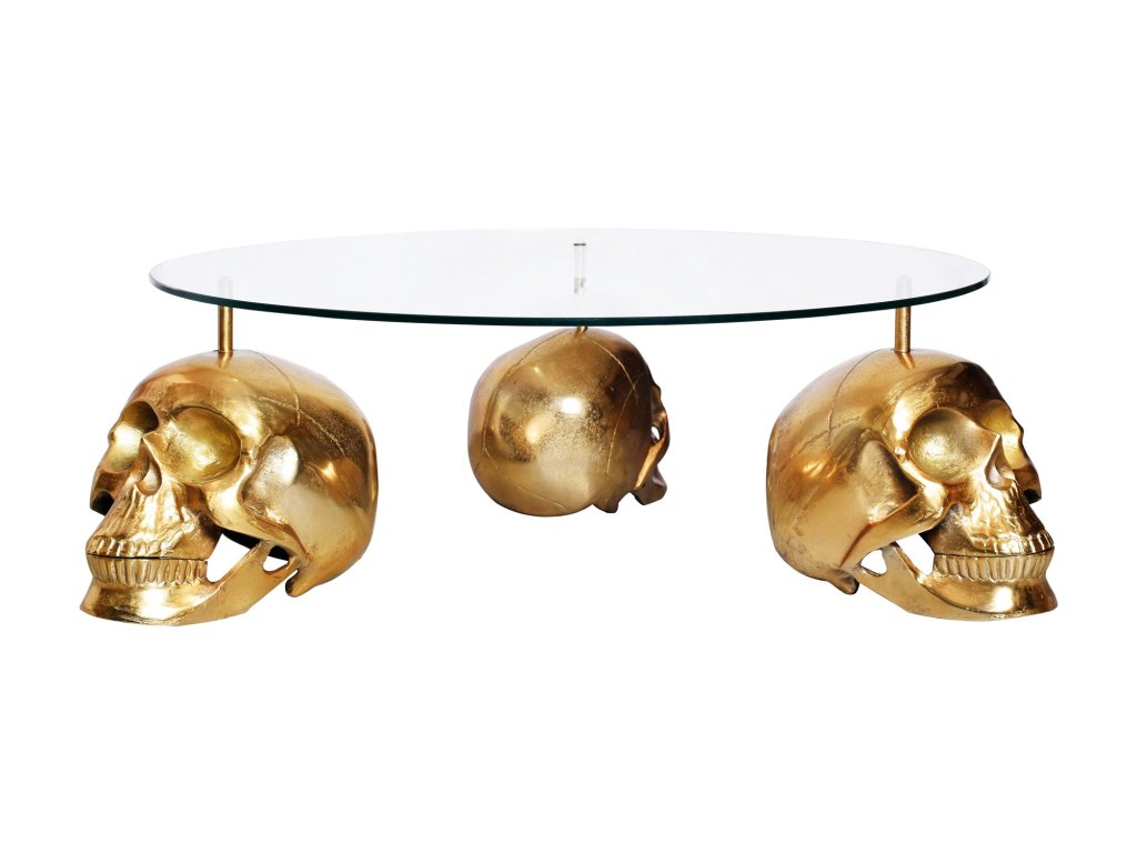 Designový konferenční stolek MEMENTO Gold Skull 90cm zlatý