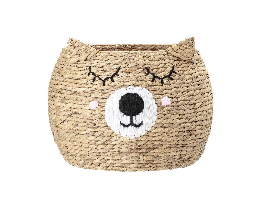 Eman je roztomilý košík od Bloomingville MINI s malými oušky a obličejem medvídka vyšitým na přední straně. Je vyroben z vodního hyacintu a je praktický pro všechny druhy skladování.Doplňkové parametry