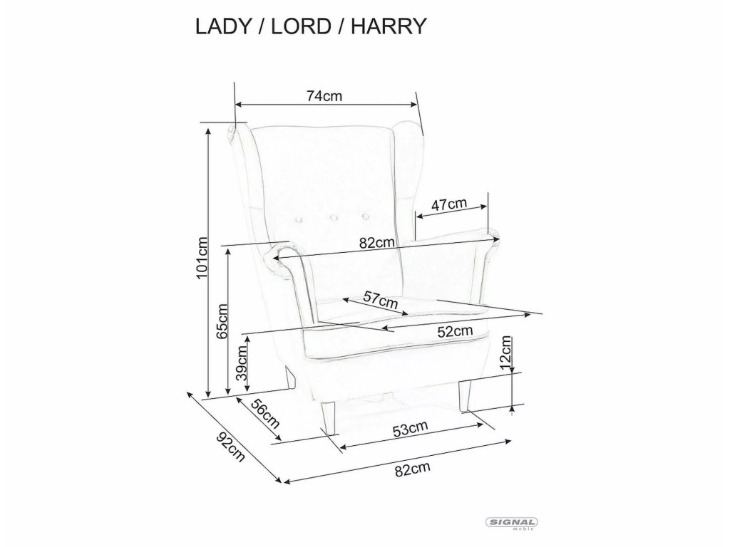 Wymiary łóżka / sofy / fotela: | D - 57, C - 39, A - 101, F - 12 cm, B - 82, E - 92 |