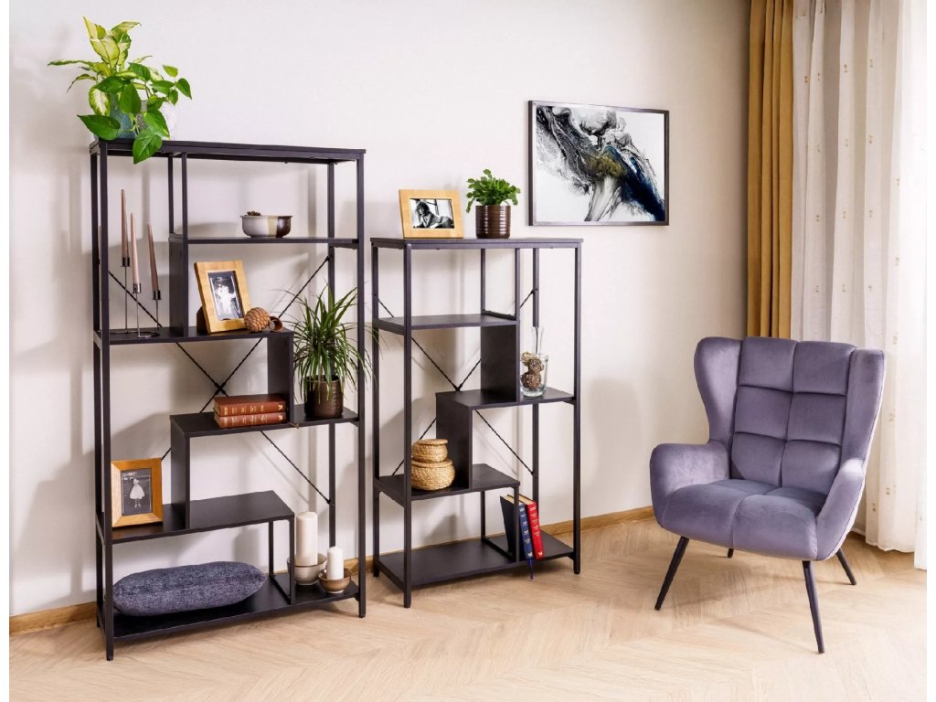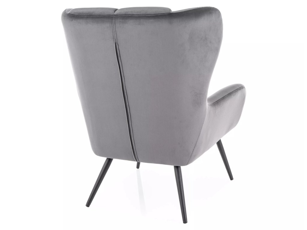 Křeslo, sametová látka: Bluvel 14, rám: kov, barva: šedá / matná černá.Rozměry křesla: A - 91, B - 75, C - 45, D - 52, E - 87, F - 29 cm