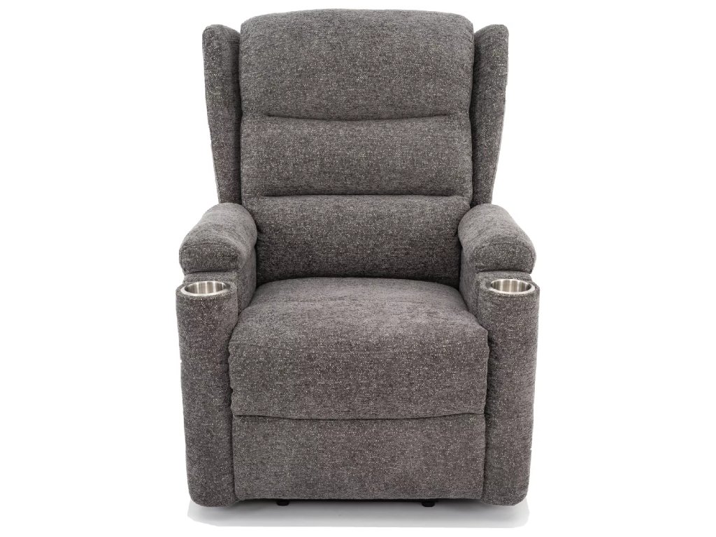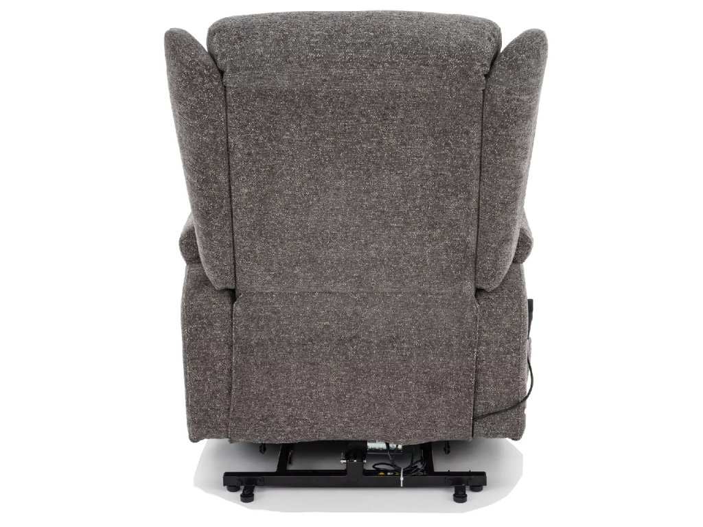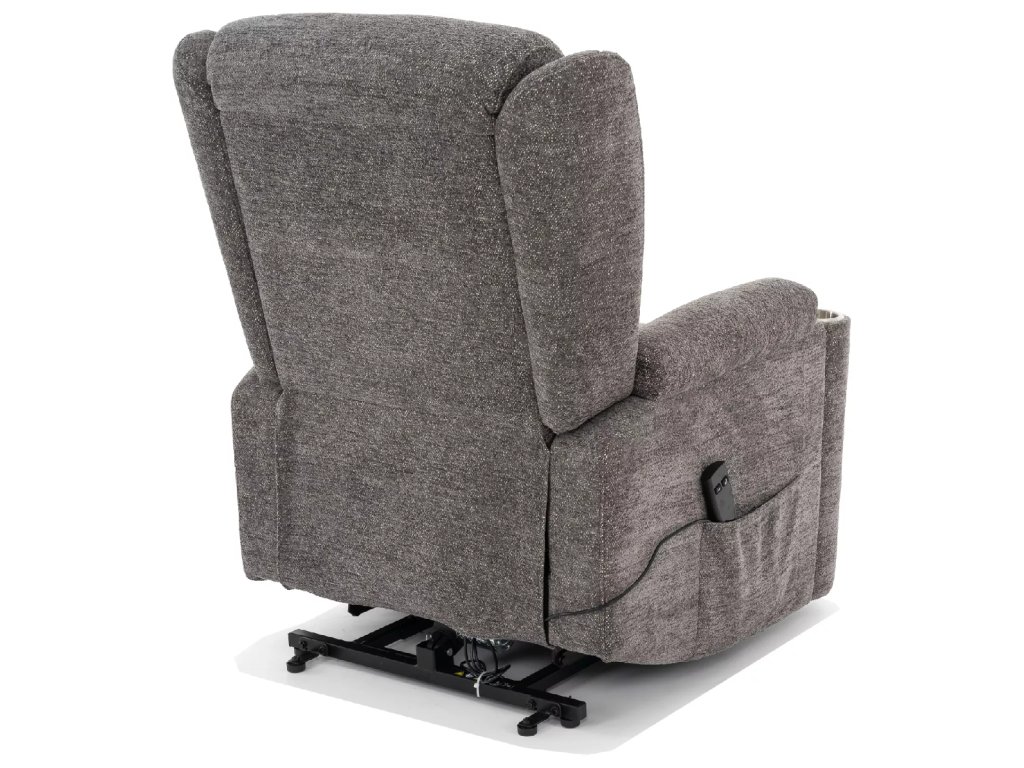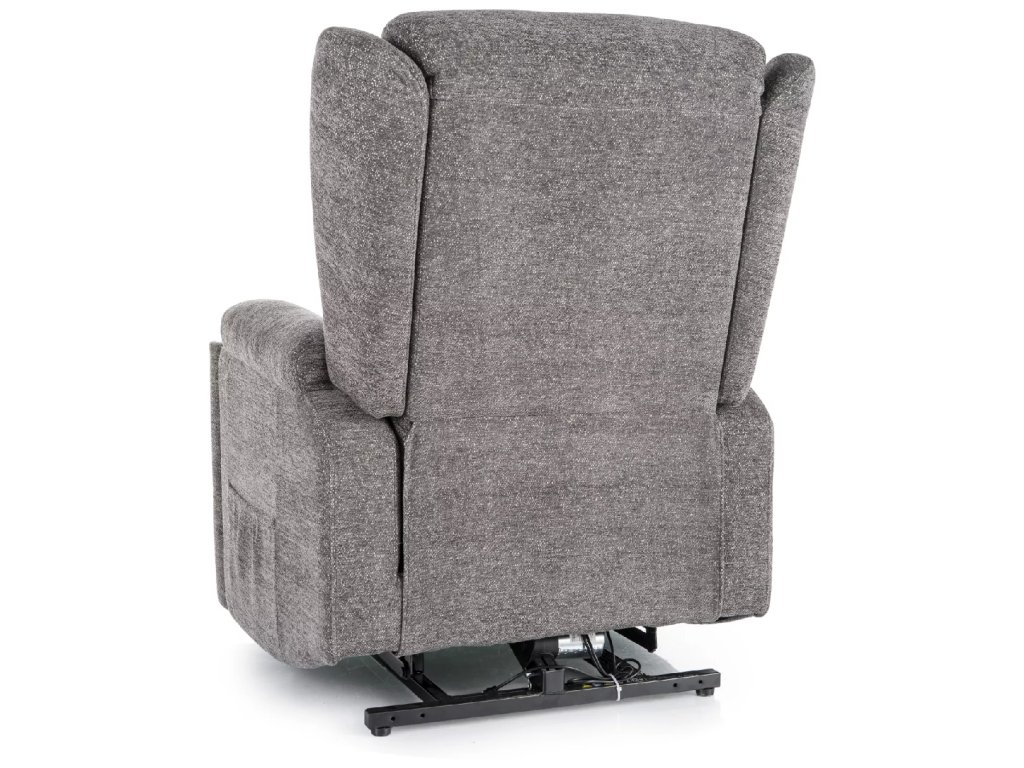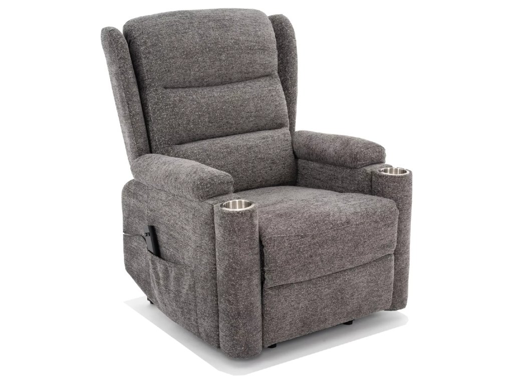 Elektricky polohovací vzpřímená židle, látka Raven 13, kovová konstrukce, barva: šedá / černá. Držák na nápoje, praktická kapsa na pravé straně, kabelové dálkové ovládání.