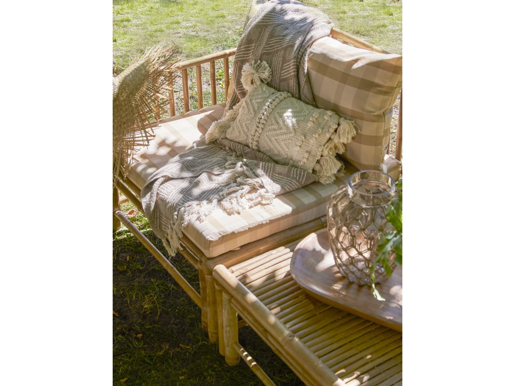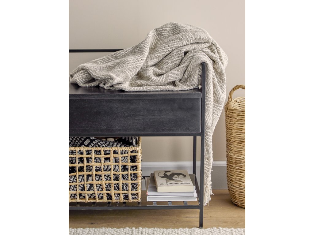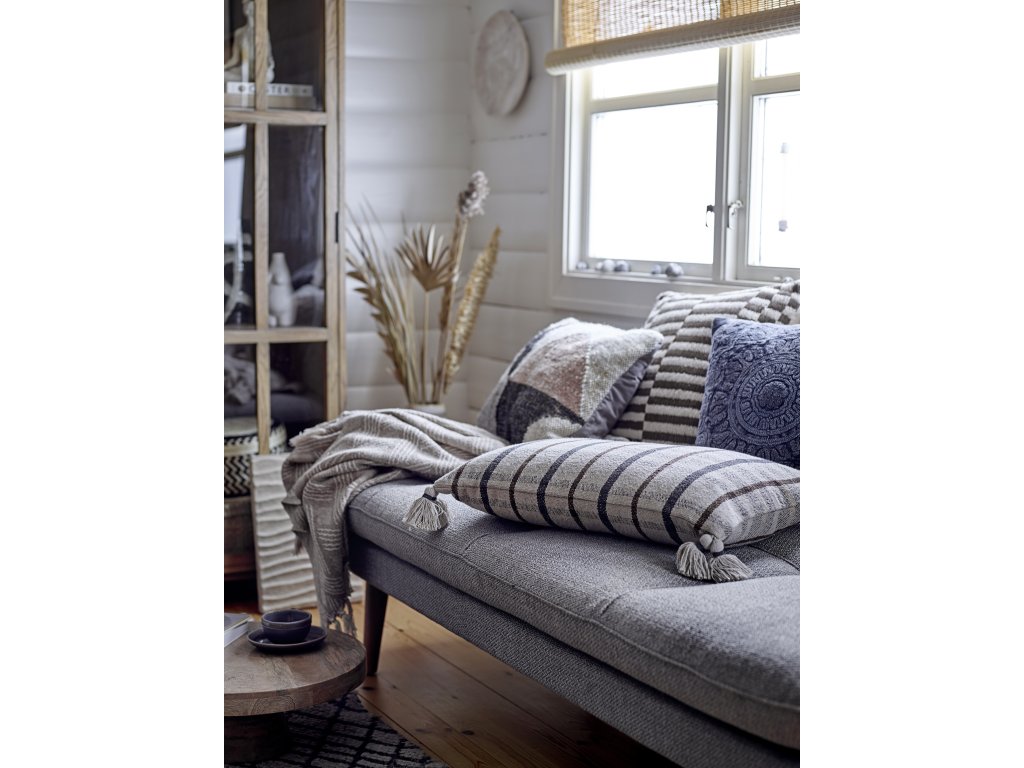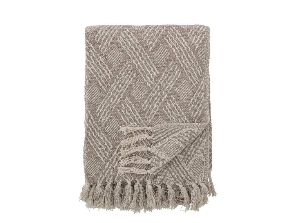 Ghina Throw od společnosti Bloomingville je elegantní přehoz z recyklované bavlny. Přehoz je tkaný s reliéfními diagonálními liniemi v přírodní barvě a ozdobnými třásněmi na okrajích. Jeho tónování mu dává mnoho možností sladění.