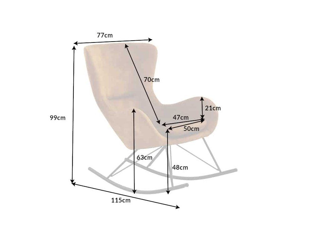 Kovová houpací podnož umožňuje jemný pohyb, který přirozeně uklidňuje a zpříjemňuje chvíle odpočinku. Díky stabilní konstrukci a modernímu designu se křeslo hodí do obývacího pokoje, ložnice nebo například do relaxačního koutku.