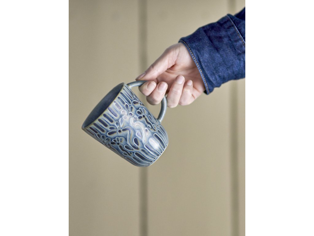 Modrý hrnek Samsin z kameniny je stylovým a praktickým doplňkem do interiéru.