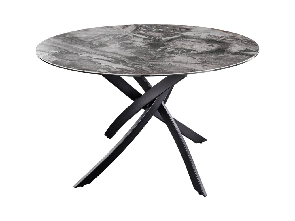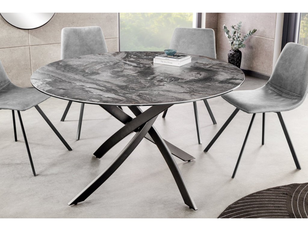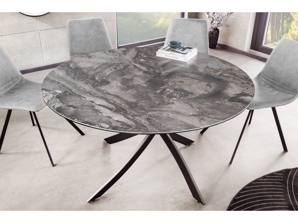 Jídelní stůl ALPINE – kulatý keramický mramorový vzhled a kov / béžový / 120 cm