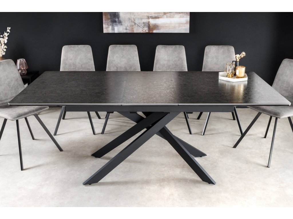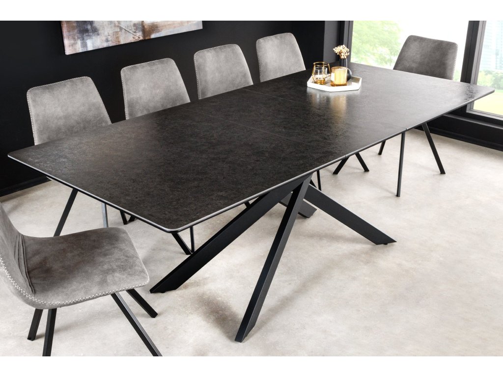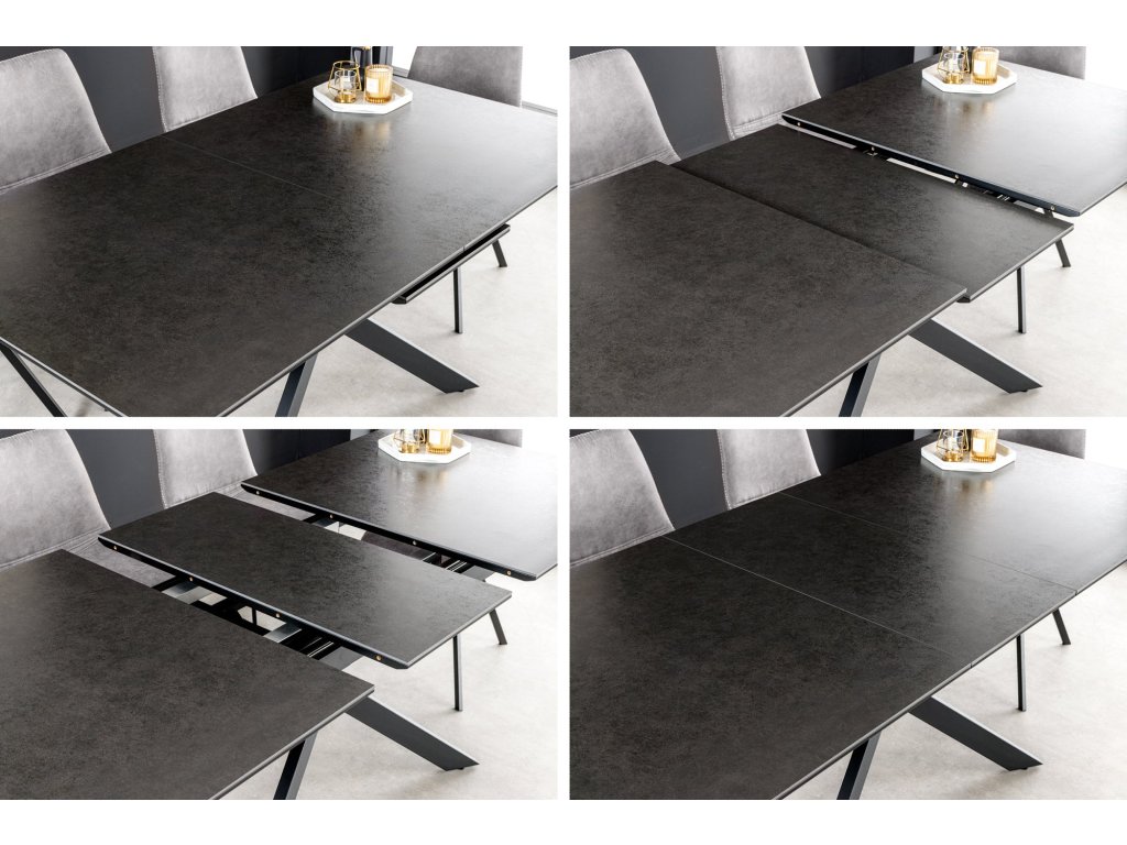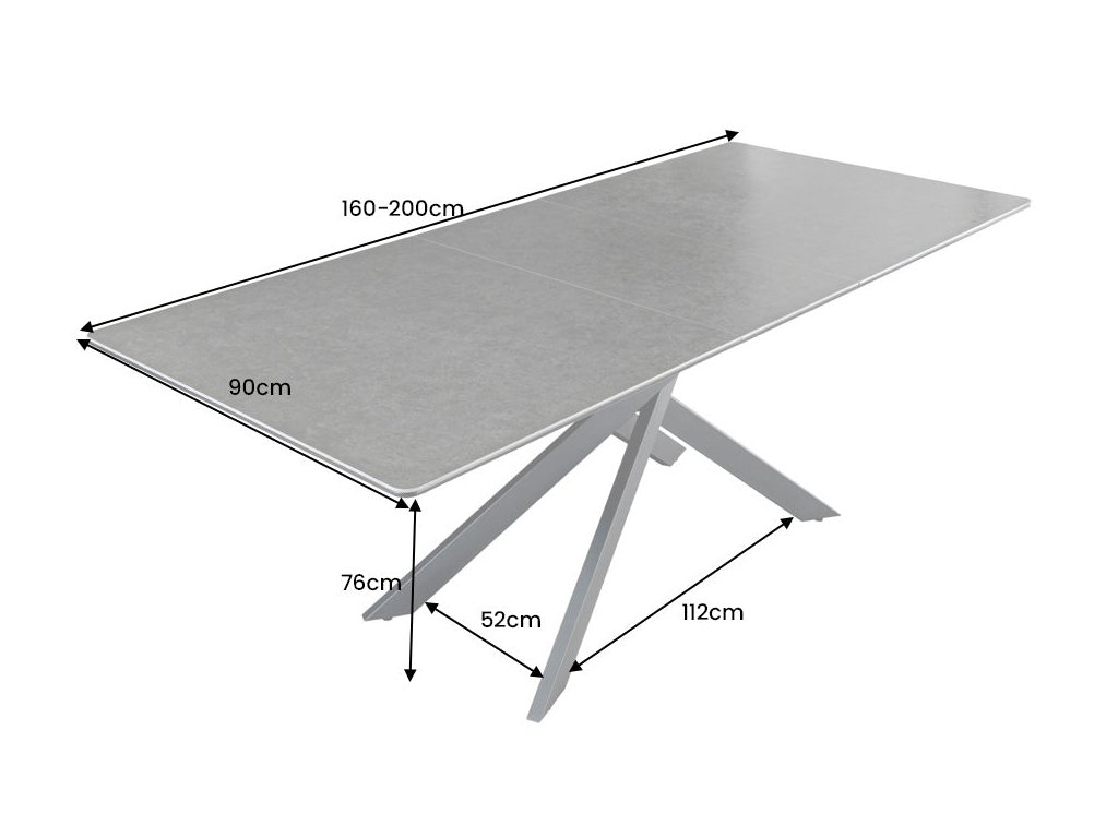 Jídelní stůl ALPINE – keramický mramorový vzhled a kov / šedý / 160–200 cm