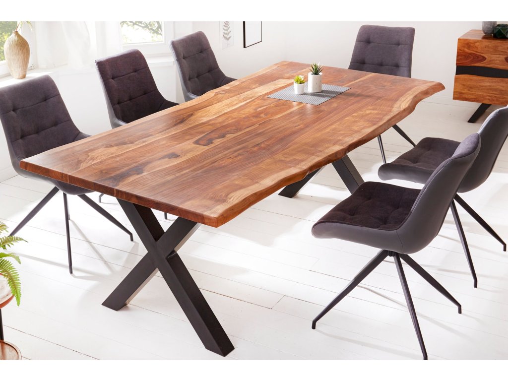 Masivní dřevěný jídelní stůl AMAZONAS 180 cm – sheeshamové dřevo/kov, X-nohy
