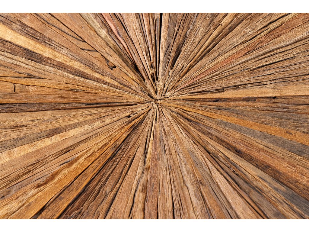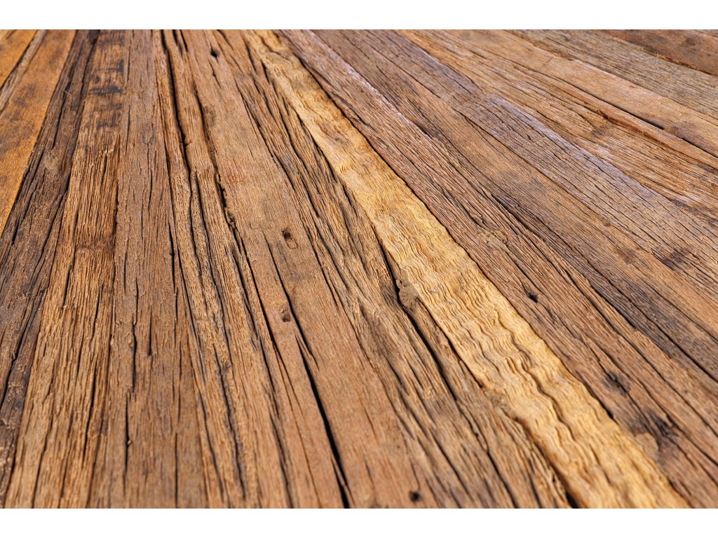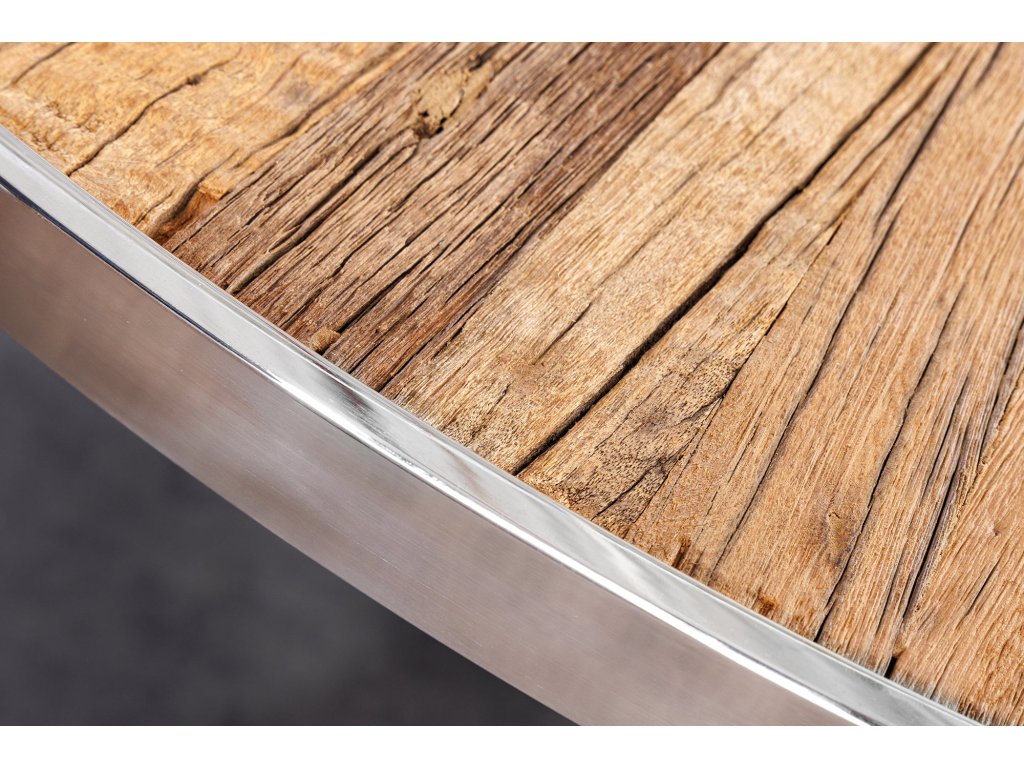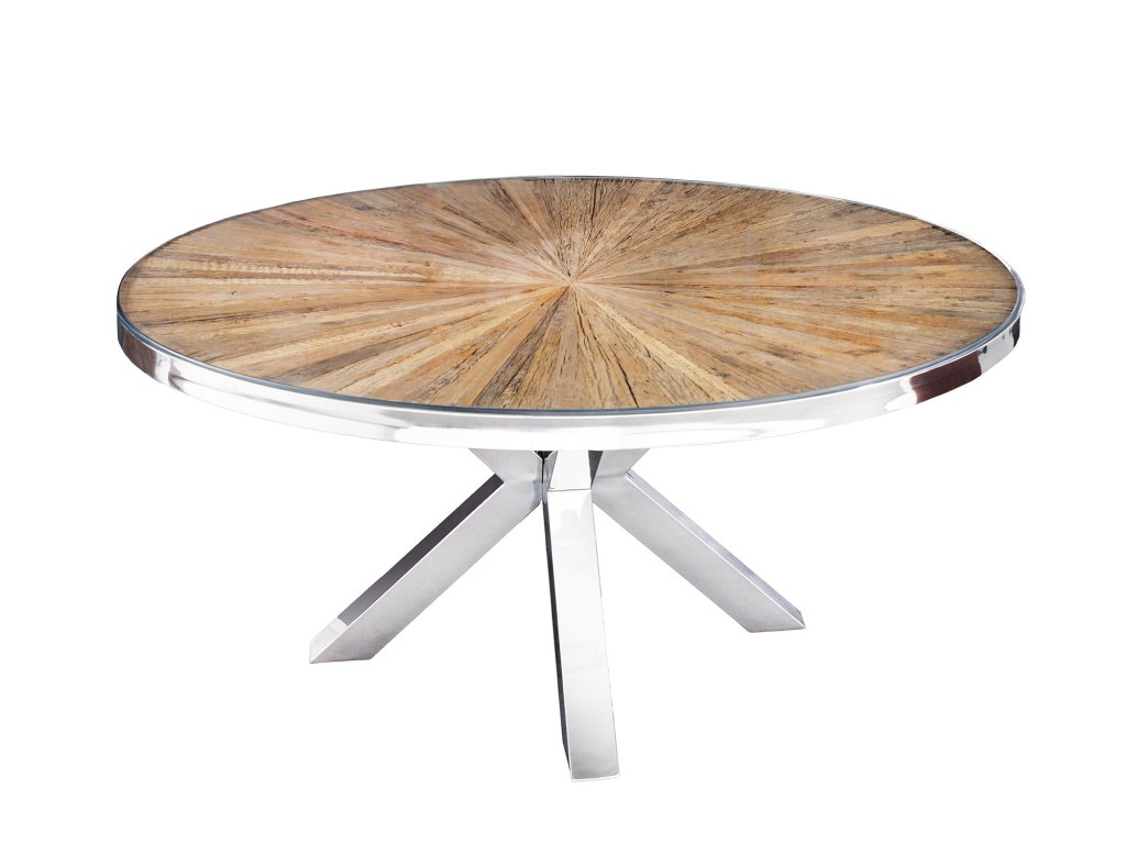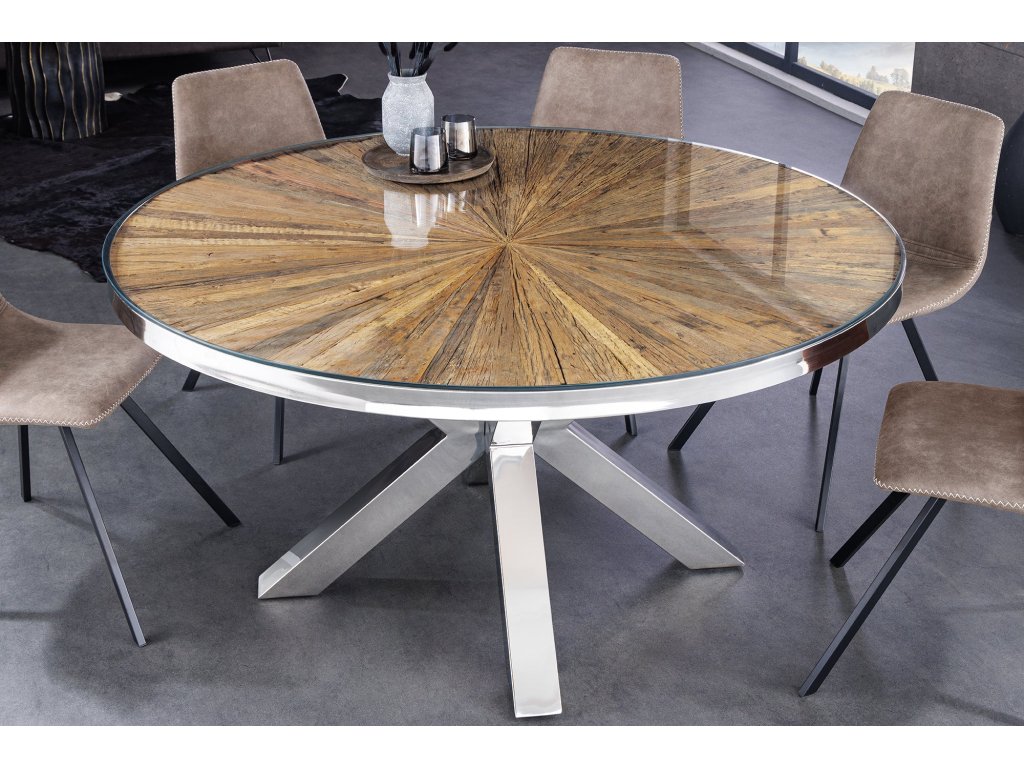 Masivní dřevěný jídelní stůl BARRACUDA 140 cm – teakové dřevo/sklo/ocel, kulatý design