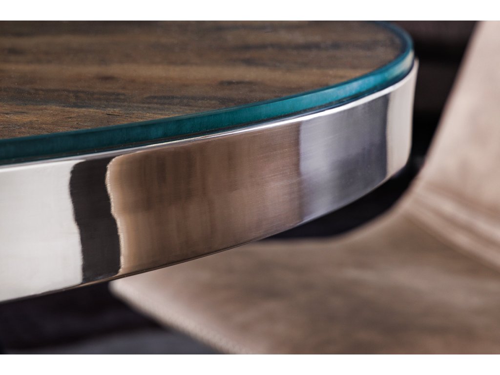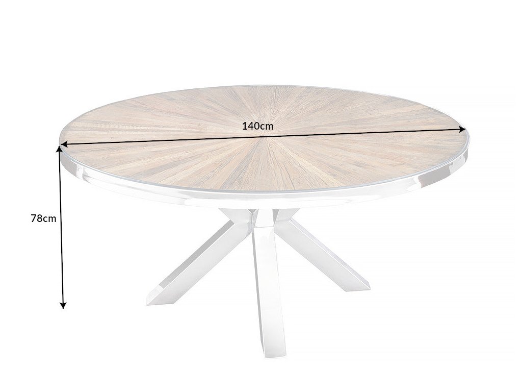 Masivní konstrukce je podpořena stabilní podnoží z chromované nerezové oceli, která dodává stolu luxusní vzhled a zároveň zaručuje pevnost. Díky kulatému tvaru o průměru 140 cm stůl poskytne dostatek prostoru pro stolování.