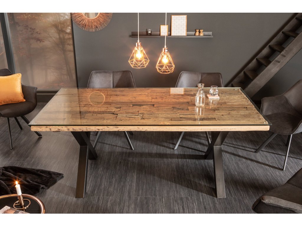 Jídelní stůl BARRACUDA 180 cm je ručně vyrobený z pravého masivního teakového dřeva, které je známé svou mimořádnou tvrdostí, odolností a charakteristickou strukturou. Každý kus je jedinečný – s autentickou kresbou a přírodními nedokonalostmi, které z něj činí originální designový prvek. Povrch je lakovaný, což zajišťuje ochranu dřeva a dlouhou životnost. Stabilní kovové nohy ve tvaru X dodávají stolu industriální vzhled a zaručují vysokou nosnost i stabilitu. Tento model se stane dominantou každé jídelny či moderního loftového prostoru.