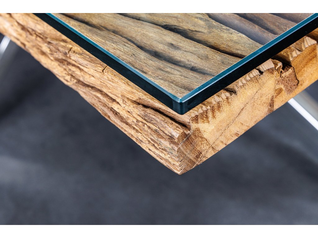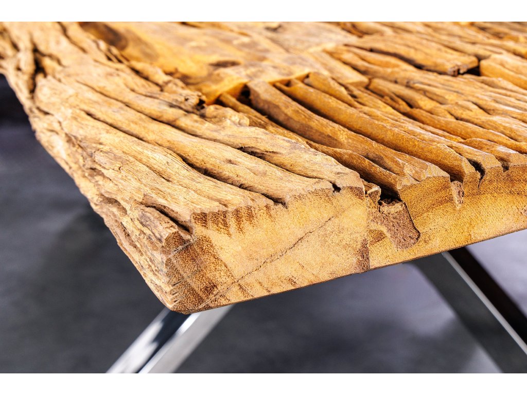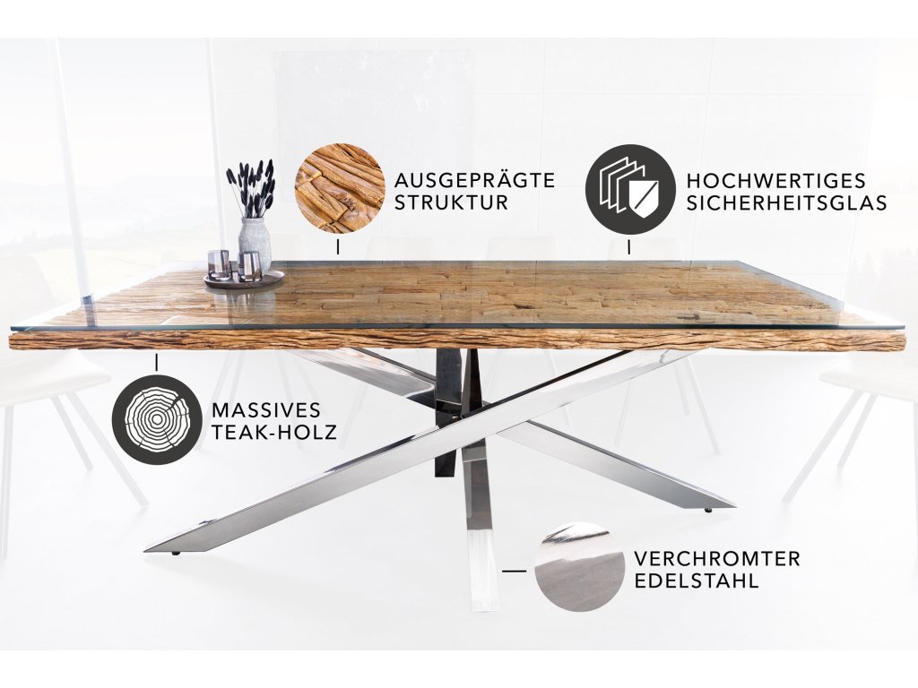 Jídelní stůl BARRACUDA – masivní teakové dřevo, tvrzené sklo a chromovaná ocel / přírodní / 220 cm