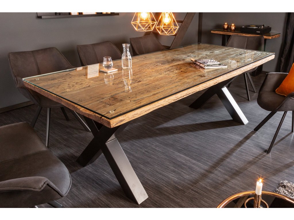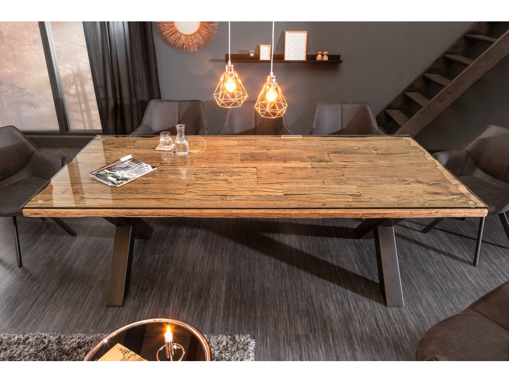 Jídelní stůl BARRACUDA – masivní teakové dřevo a kovové X-nohy / přírodní / 220 cm