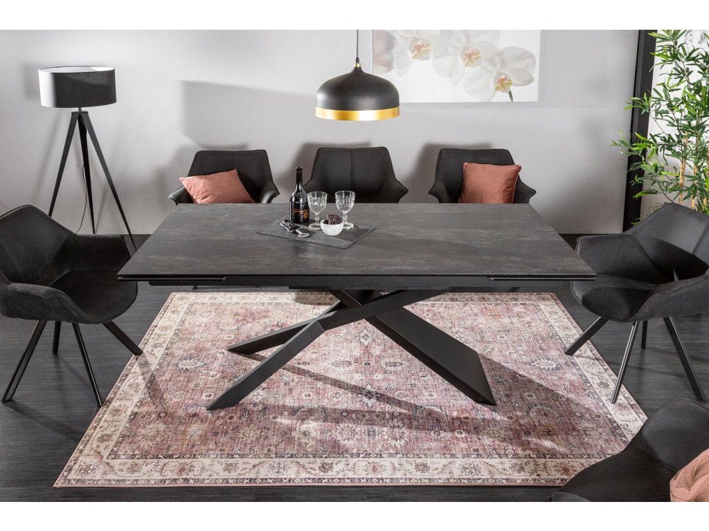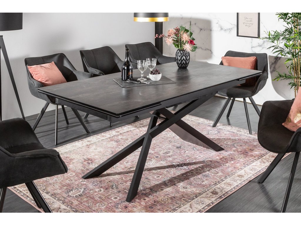 Jídelní stůl EUPHORIA – rozkládací keramický lávový vzhled / černý / 180–220 cm
