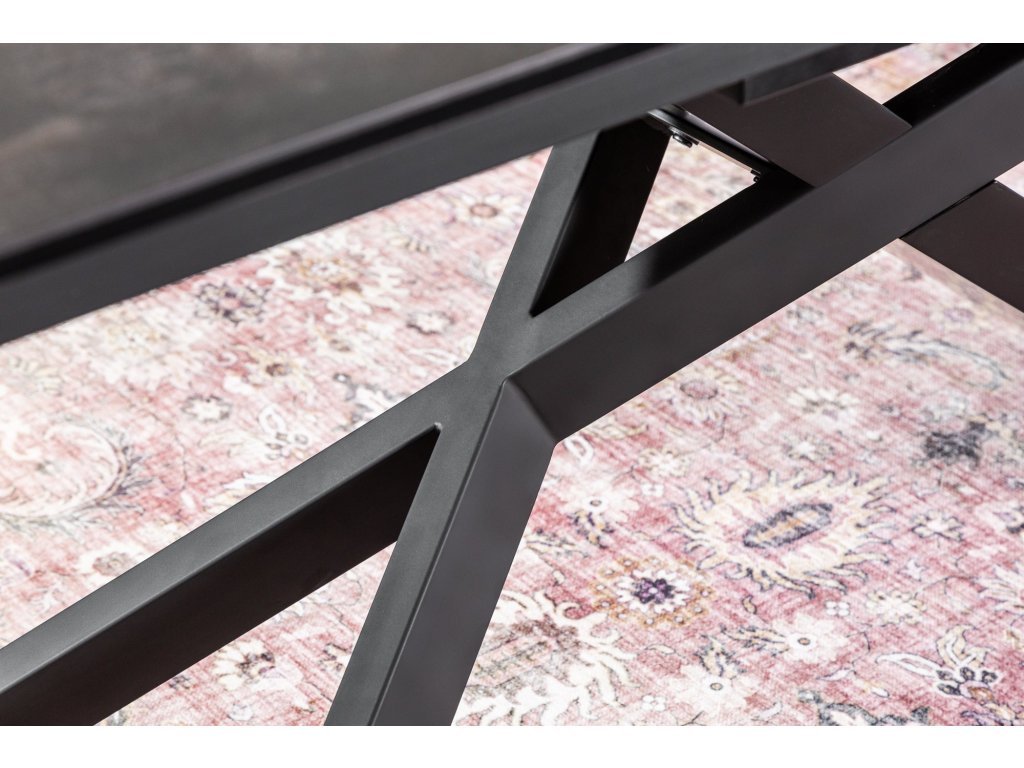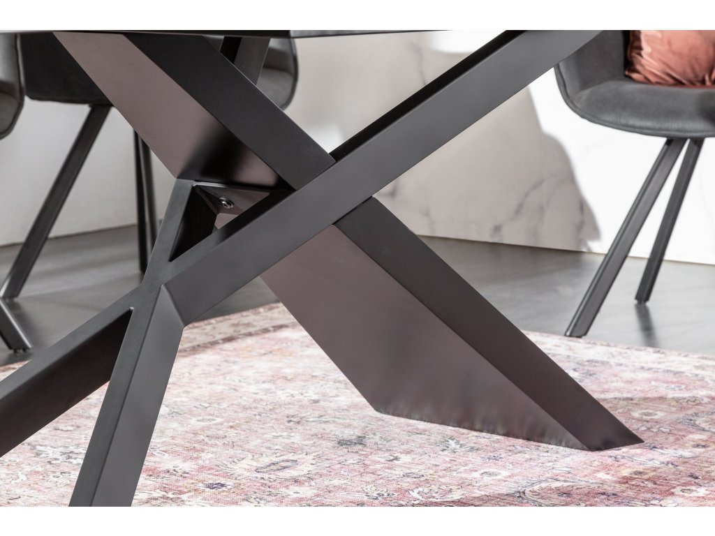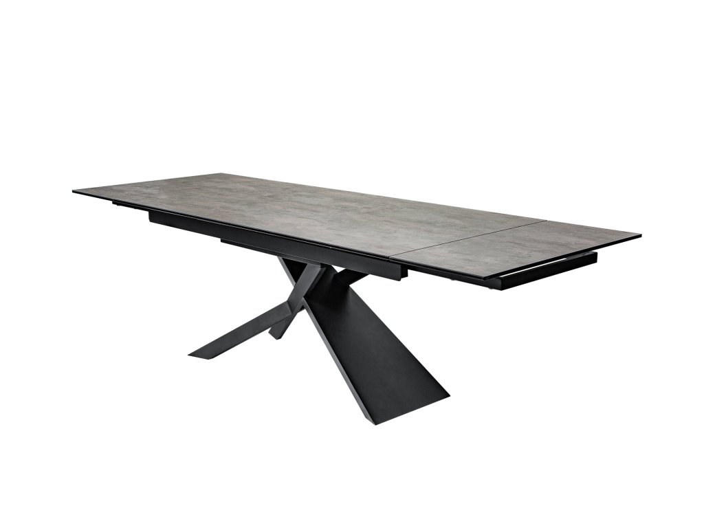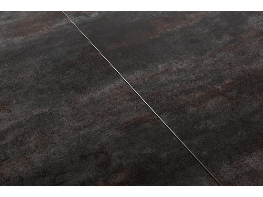 Stůl EUPHORIA zaujme svou výraznou elegancí a sofistikovanou konstrukcí. Deska je tvořena kombinací keramiky a tvrzeného skla, což zajišťuje vysokou pevnost, odolnost proti teplu, vlhkosti i poškrábání. Povrch v černém lávovém efektu působí luxusně a dodává interiéru moderní industriální nádech. Díky praktickému rozkládacímu mechanismu lze délku stolu prodloužit z 180 na 220 cm, takže pohodlně usadí až 10 osob. Stabilní kovová podnož v černém matuzaručuje perfektní stabilitu i dlouhou životnost.