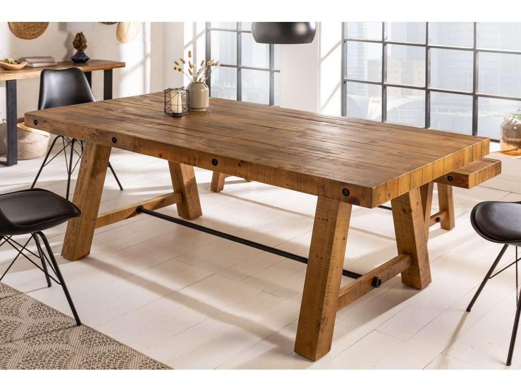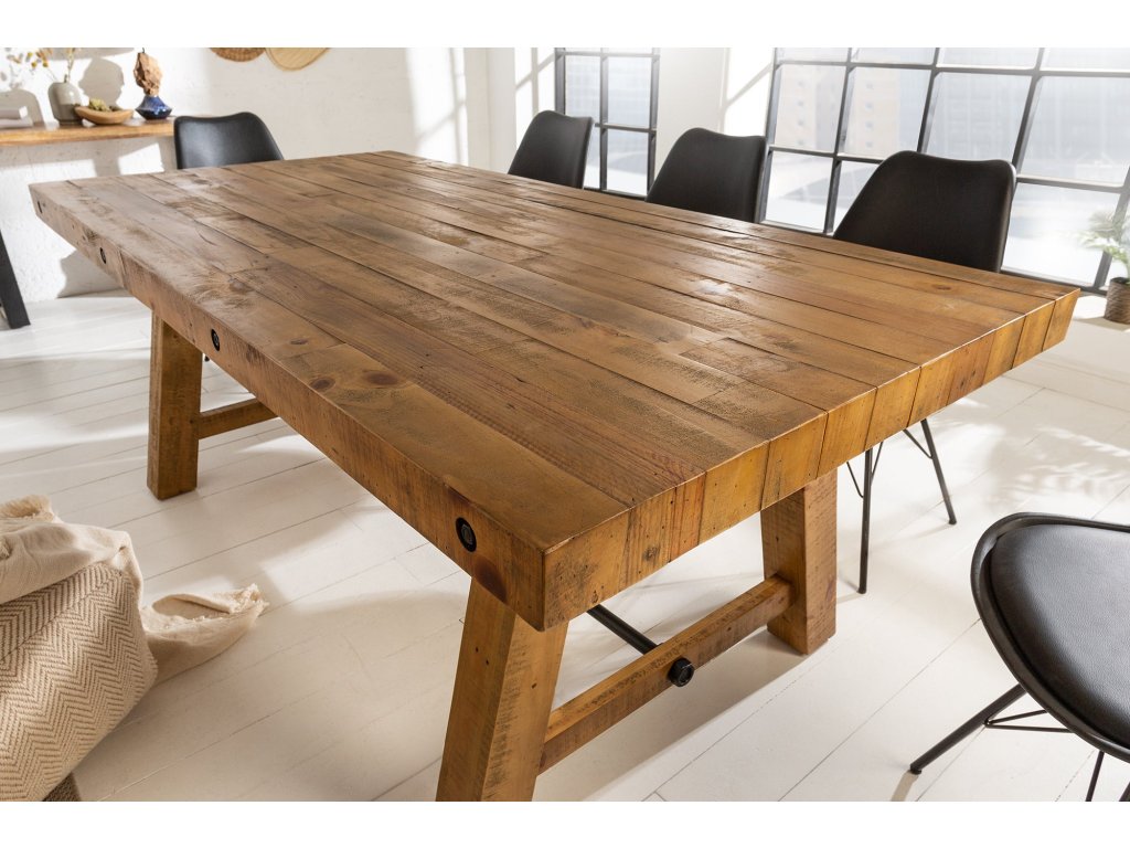 Masivní dřevěný jídelní stůl FINCA – borovice vintage hnědá / kovové detaily / 200 cm