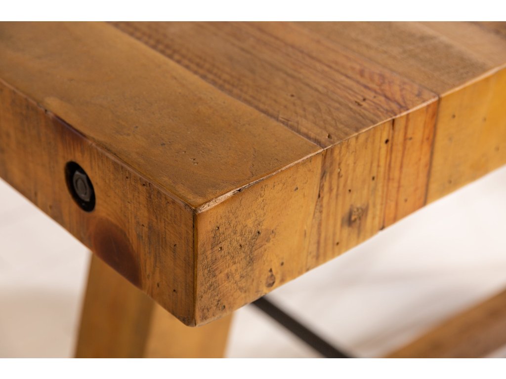 Jídelní stůl FINCA vyniká svým industriálně-rustikálním charakterem, který kombinuje přírodní masivní borovici s kovovou výztuhou pro dokonalou stabilitu a dlouhou životnost.