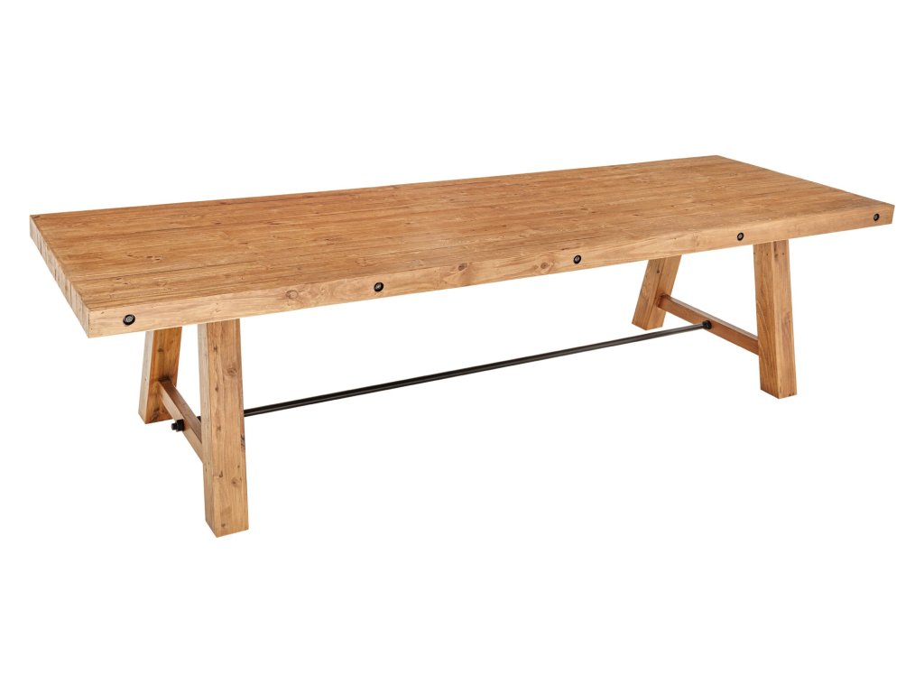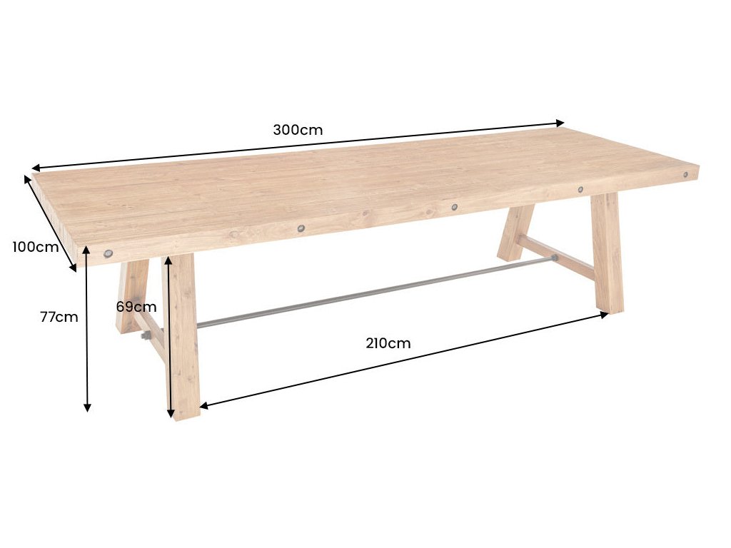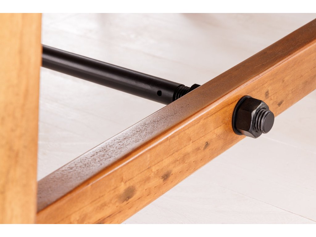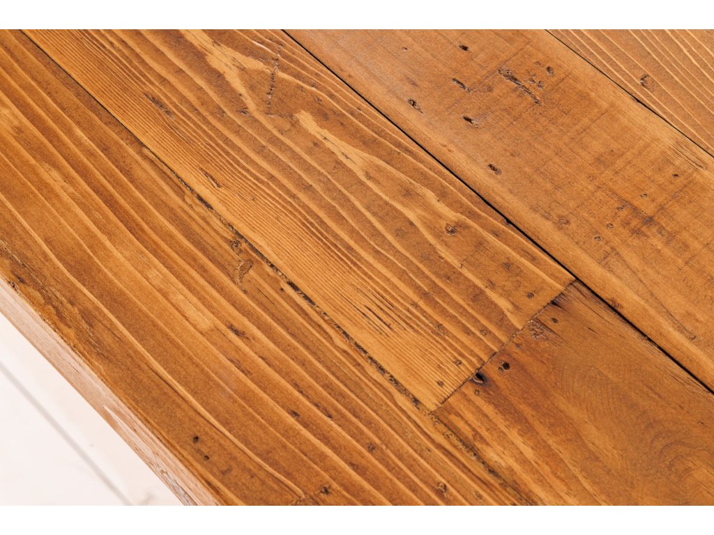 Ruční opracování dodává každému kusu originální kresbu i texturu, takže žádný stůl není stejný. Kovová výztuhazajišťuje stabilitu i při každodenním používání. Tento velký model je ideální pro 10–12 osob, a perfektně zapadne do loftových, venkovských i moderních interiérů.