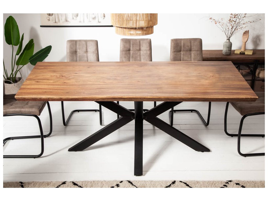 Masivní dřevěný jídelní stůl GALAXIE II – sheesham / černá kovová podnož / 180 cm