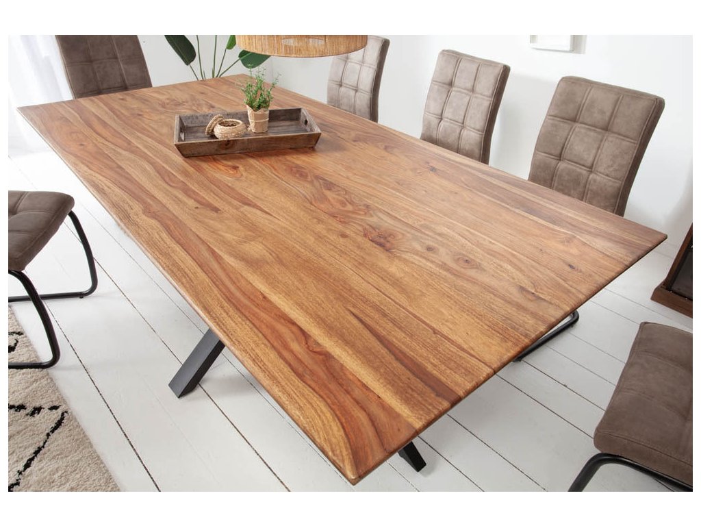 Masivní jídelní stůl GALAXIE II 180 cm je kombinací přírodní krásy a pevné kovové konstrukce. Deska z pravého dřeva sheesham (indický palisandr) vyniká jedinečnou strukturou a barevnými přechody, díky nimž je každý kus originál.