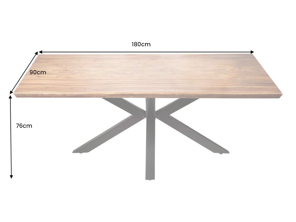 Silná kovová podnož zajišťuje perfektní stabilitu a dodává stolu moderní industriální vzhled. Rozměr 180 × 90 cmposkytuje dostatek prostoru pro 6–8 osob, což z něj činí ideální volbu pro rodinné stolování i reprezentativní prostory.