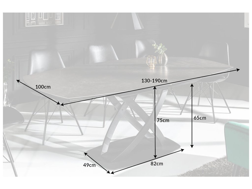 Jídelní stůl INCEPTUN 130-190cm keramický antracit s tvrzeným sklem