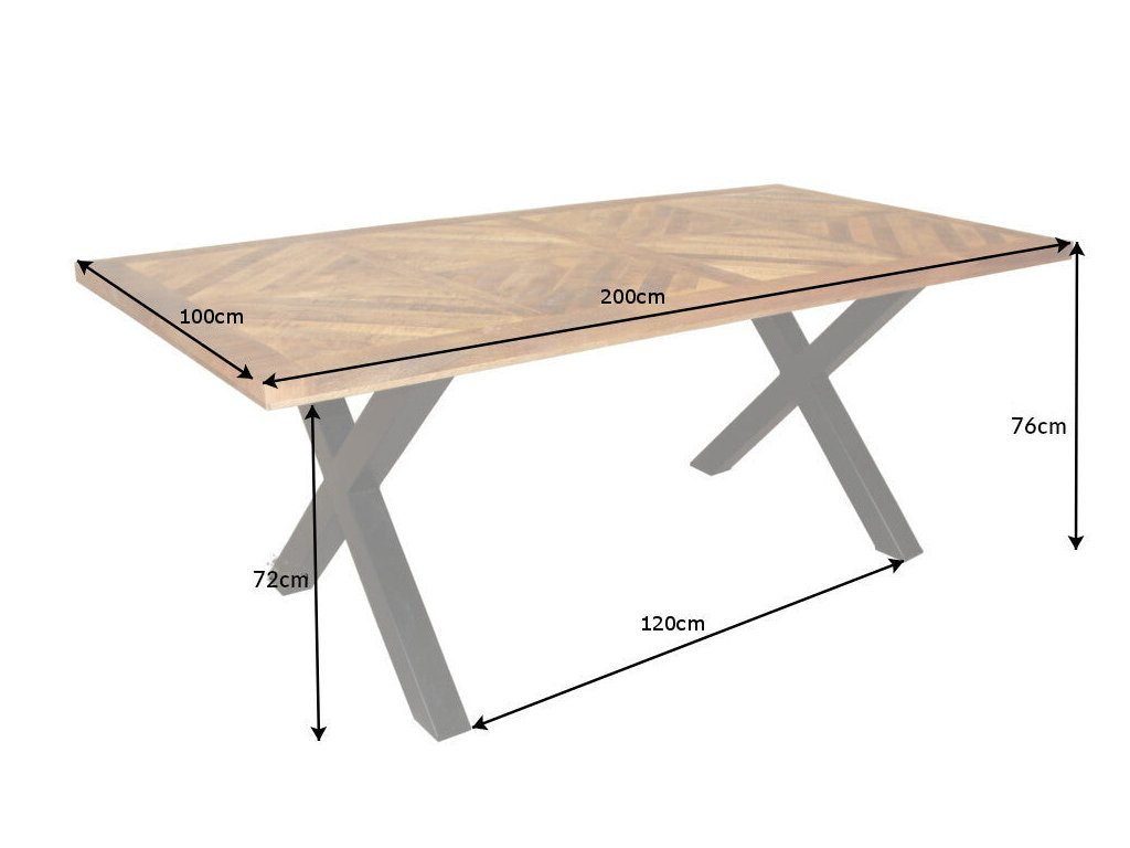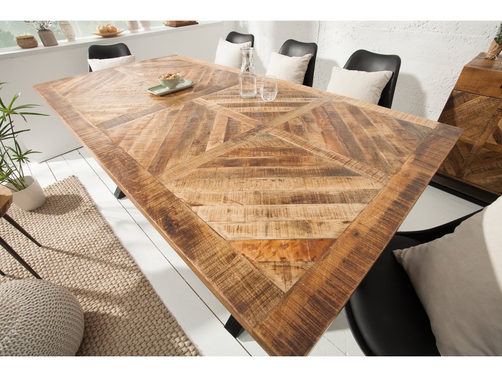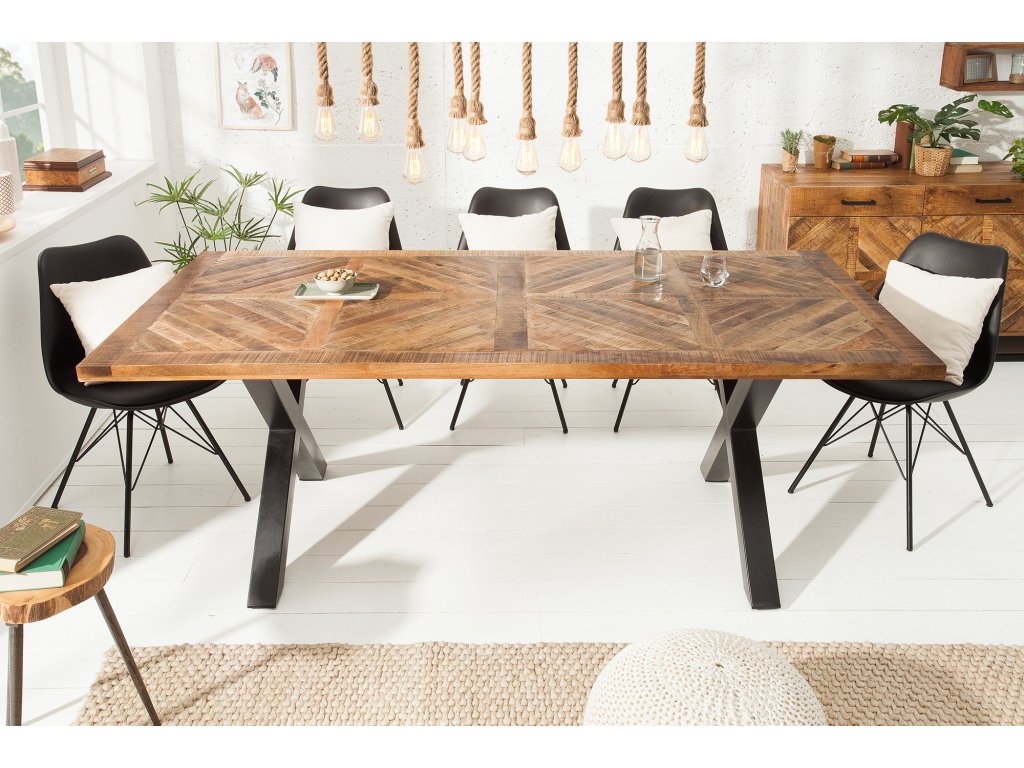 Jídelní stůl INFINITY HOME 200 cm – masivní mangové dřevo, černé X-nohy