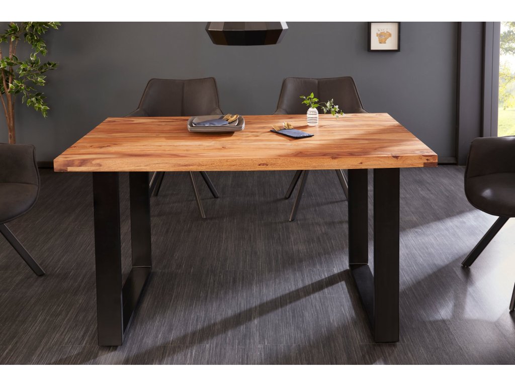 Jídelní stůl IRON CRAFT 120 cm – masivní Sheesham, černé U-nohy