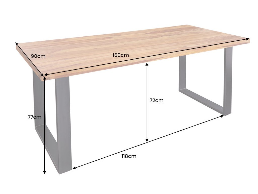 Jídelní stůl IRON CRAFT 160 cm – masivní Sheesham, černé U-nohy
