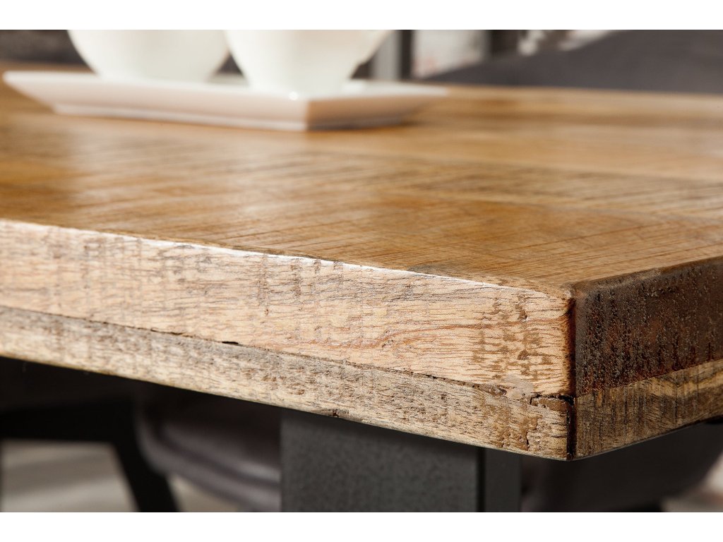 Tento designový stůl je vyroben z pravého mangového dřeva, které zaujme krásnou kresbou i přirozeným teplým odstínem. Deska o tloušťce 45 mm je lakovaná, aby vynikla textura dřeva a zároveň byla chráněna před vlhkostí a poškozením. Masivní černé U-nohy z kovu zajišťují stabilitu a dodávají celku výrazný industriální vzhled. Rozměr 180 × 90 cm poskytuje dostatek prostoru až pro 10 osob, ideální pro rodinné stolování i přátelská setkání.
