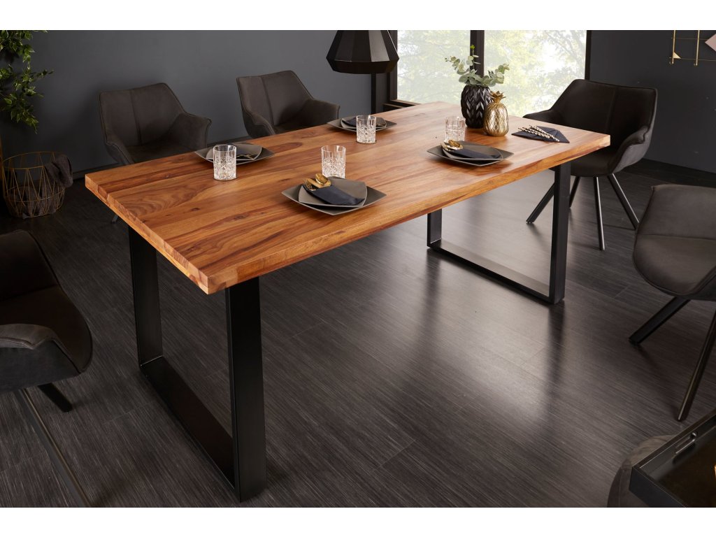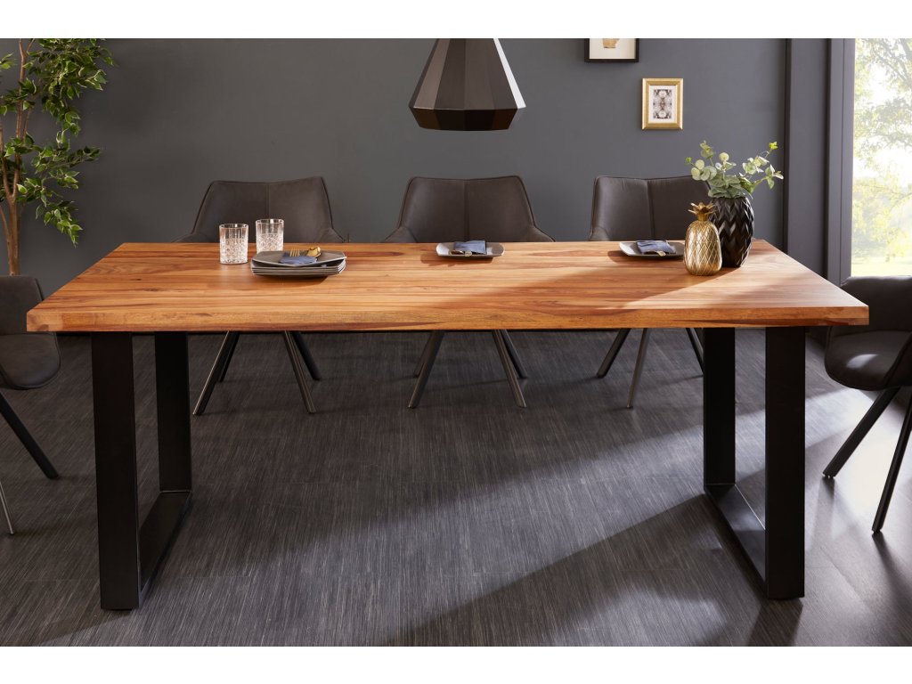 Jídelní stůl IRON CRAFT 200 cm – masivní sheeshamové dřevo, černé U-nohy