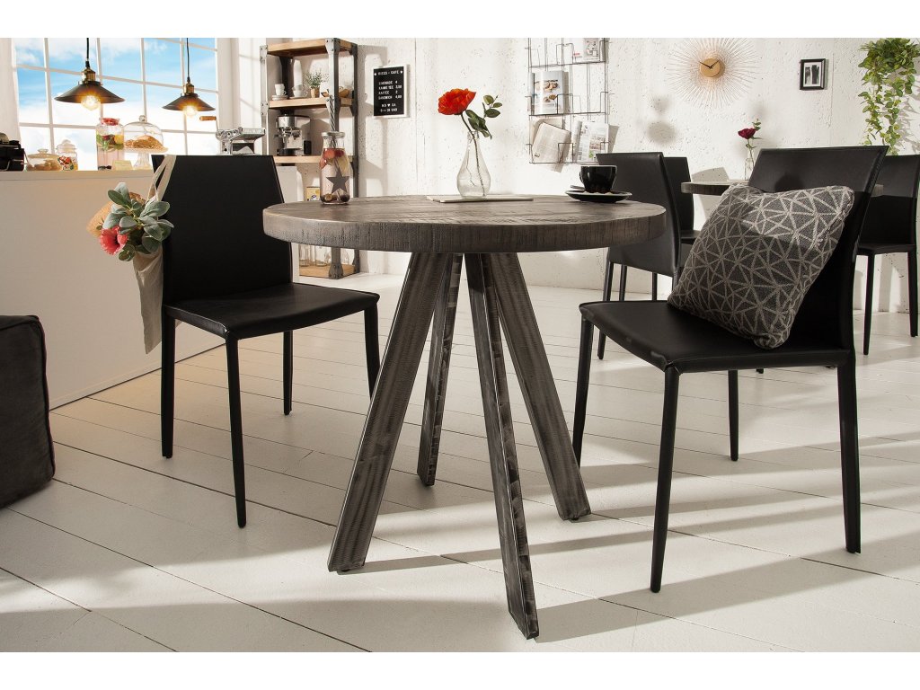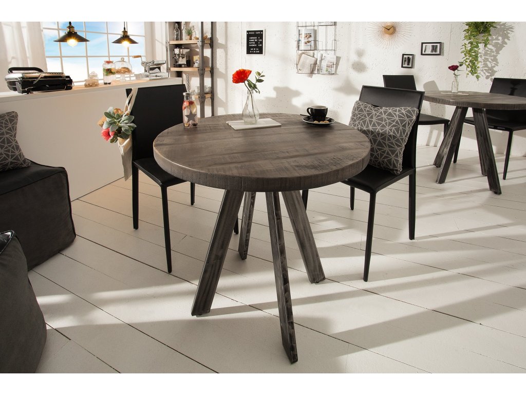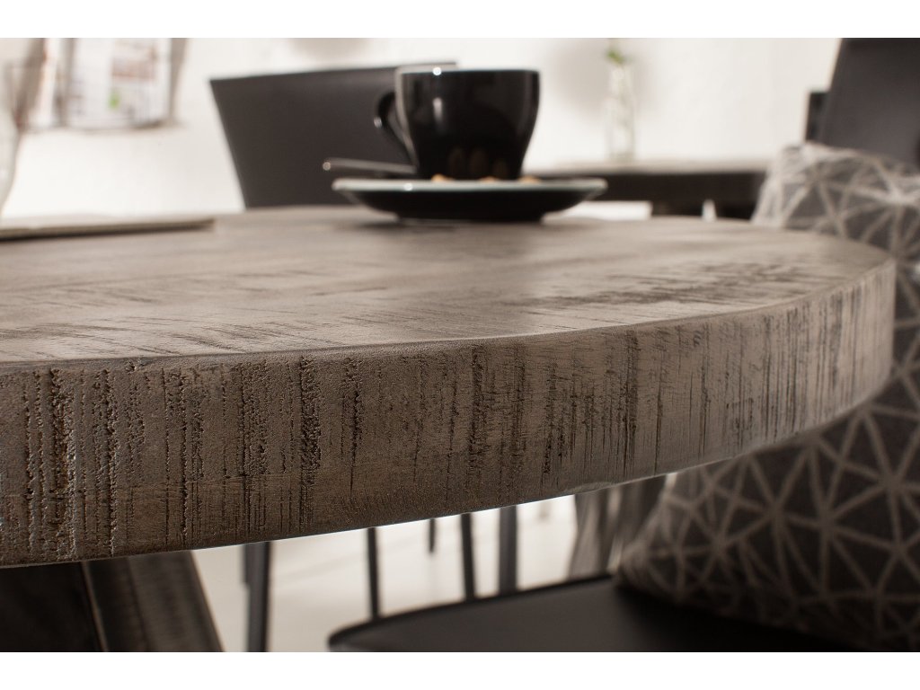 Jídelní stůl IRON CRAFT Ø80 cm – šedý mangový masiv, kovové nohy