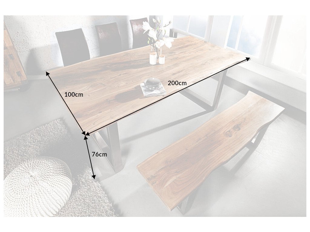 Jídelní stůl MAMMUT 200cm stolová deska 35mm akátové dřevo