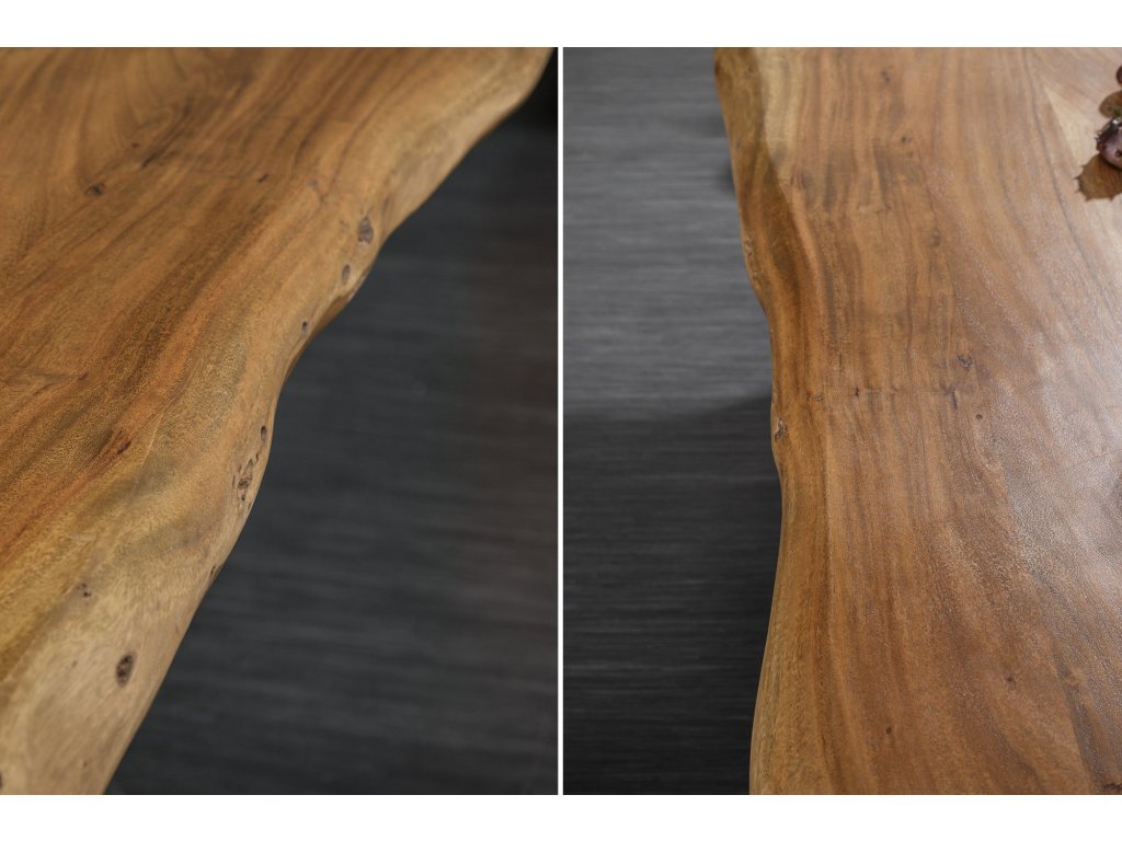 Tento masivní jídelní stůl MAMMUT je určen pro ty, kteří hledají skutečnou dominantu interiéru. Deska stolu je vyrobena z kvalitního akátového masivu o tloušťce 60 mm, který vyniká pevností, přirozenou strukturou a nádherným zlatavě hnědým odstínem. Ručně opracované hrany zachovávají autentický vzhled živého dřeva.