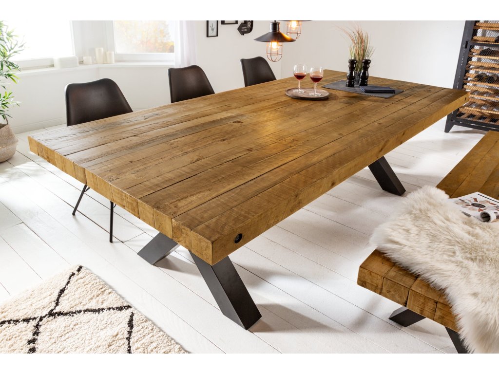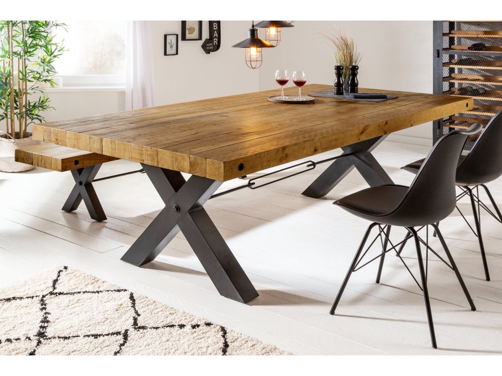 Jídelní stůl THOR 200cm X-nohy borovice vintage hnědá