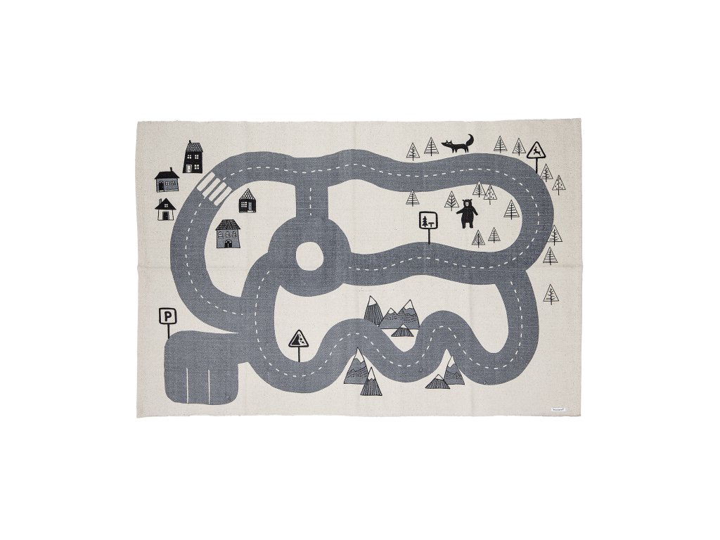 Koberec Dennis od Bloomingville MINI je krásný světle šedý koberec se vzorem cesty vedoucí do přírodní rezervace se zvířaty a horami. Díky bavlněnému materiálu je koberec odolný a snadno se čistí a světle šedá barva se dobře kombinuje s většinou dekorů. Koberec bude skvěle vypadat v dětském pokoji a lze jej použít i jako hrací podložku.Doplňkové parametry