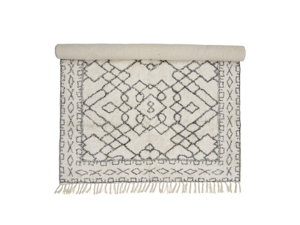 Koberec Jaqueline od společnosti Bloomingville je nádherný bílý koberec, který vnese do domova teplo. Koberec je vyroben z bavlny s černým a geometrickým potiskem a třásněmi vytváří krásný vzhled v nadčasovém designu. Skvěle se hodí do každé místnosti, kde vytvoří útulné prostředí.Doplňkové parametry