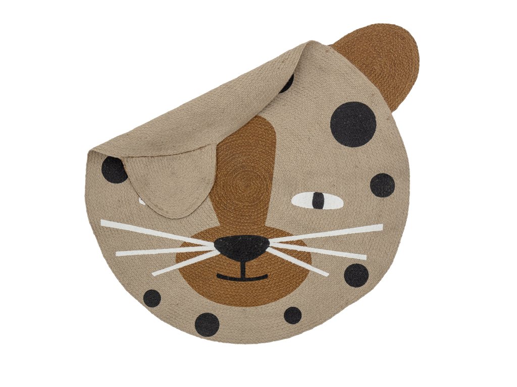Koberec Naffie od Bloomingville MINI je zaoblený jutový koberec v krásných přírodních barvách. Koberec má tvar leoparda s malými oušky jako krásným detailem. Prostě ideální na hraní a jako dekorace do dětského pokoje.Doplňkové parametry